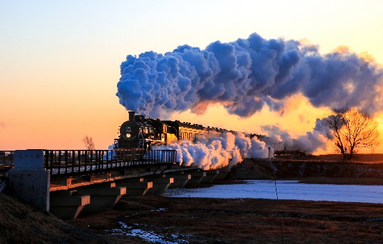 蒼茫原野上,汽笛的轟鳴打破寂靜,一列蒸汽機(jī)車緩緩而來。