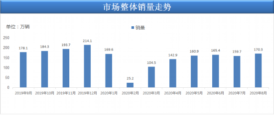 從整體市場銷量情況來看,8月乘用車市場零售銷量為170.3萬輛,同比增長8.9%,實(shí)現(xiàn)自2018年5月以來的最強(qiáng)正增長。根據(jù)統(tǒng)計(jì),今年1-8月的零售累計(jì)增速-15.2%,較1-7月累計(jì)增速提升了3.3個(gè)百分點(diǎn),體現(xiàn)行業(yè)的快速回暖態(tài)勢。