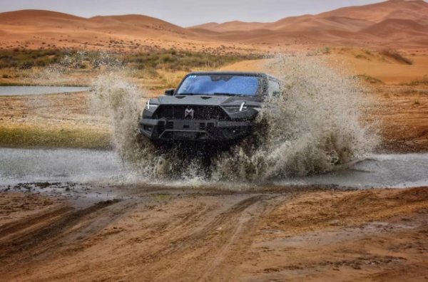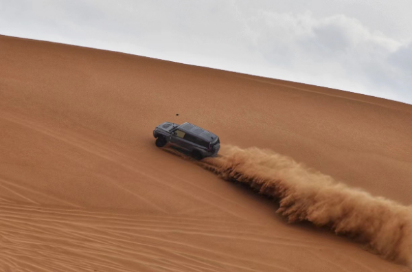 “快走沙、慢走水”是越野圈的一句經(jīng)典老話,也是無數(shù)越野玩家的經(jīng)驗之談。在沙漠里,道路過于“松軟”,具有很多不確定性,車輪非常容易打滑甚至陷入沙坑,陷沙、翻車的情況屢見不鮮,只有快速通過才是硬道理,而要快速通行或是過坑、沖坡,必須依靠強悍的動力、強大的四驅(qū)以及細膩的越野技術(shù)。猛士品牌猛士917基于M TECH猛士智能越野架構(gòu)開發(fā),純電版和增程版分別能輸出最大功率1000馬力和800馬力,采用兩擋變速箱,峰值輪邊扭矩更是超過16000?!っ?,擁有超強暴發(fā)力。
