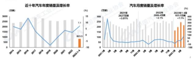 中新網(wǎng)5月11日電 據(jù)中汽協(xié)會(huì)數(shù)據(jù)微信公眾號(hào)11日消息,中國汽車工業(yè)協(xié)會(huì)發(fā)布數(shù)據(jù)顯示,4月,汽車產(chǎn)銷分別完成213.3萬輛和215.9萬輛,環(huán)比分別下降17.5%和11.9%,同比分別增長76.8%和82.7%。1-4月,汽車產(chǎn)銷分別完成835.5萬輛和823.5萬輛,同比分別增長8.6%和7.1%。