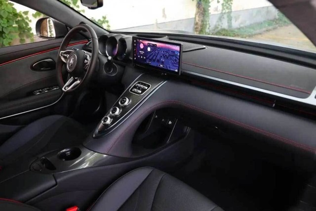 新車的內(nèi)飾通過(guò)大面積的黑色來(lái)與外觀相呼應(yīng),并且通過(guò)紅色的縫線進(jìn)行點(diǎn)綴,進(jìn)一步提升視覺(jué)效果。三圓形的儀表盤(pán)同樣有著較強(qiáng)的復(fù)古風(fēng),中間位置一塊懸浮式的中控大屏則將實(shí)用拉滿。