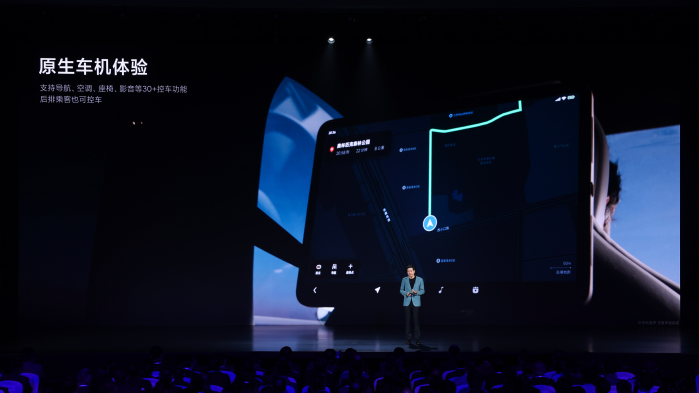 小米澎湃智能座艙在設(shè)計之初就將手機、平板視為座艙的一部分,實現(xiàn)多端一體化原生設(shè)計。手機與車機無感連接,手機上常用 App可一鍵 PIN到車機上,后排擴展屏上的平板可自動切換至原生控車桌面,實現(xiàn)導(dǎo)航信息實時同步,自由調(diào)整空調(diào)、座椅加熱、全車音樂等功能。