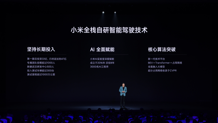 “選智能電動車本質(zhì)上就是選智能科技的實力,這是大家對小米、對新能源車真正的期待?!痹诶总娍磥?,智駕+智艙+生態(tài),將會成為小米汽車參與競爭的技術(shù)制高點。