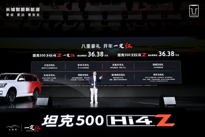 央廣網(wǎng)北京1月2日消息(記者 姜鵬)2025年1月1日,坦克500 Hi4-Z在保定·長(zhǎng)城汽車技術(shù)中心上市,售價(jià)36.38萬(wàn)元,坦克500 Hi4-Z一定紅同步發(fā)售。 剛剛結(jié)束的2024年,坦克品牌全年銷量達(dá)到23萬(wàn)輛,成立4年總銷量突破60萬(wàn)輛。而面對(duì)新能源浪潮,坦克正建立起全動(dòng)力布局技術(shù)價(jià)值護(hù)城河,同時(shí)布局強(qiáng)越野超級(jí)混動(dòng)架構(gòu)Hi4-T和泛越野超級(jí)電混架構(gòu)Hi4-Z。Hi4-T技術(shù)定義強(qiáng)越野序列,是以越野性能為基礎(chǔ),賦予新能源體驗(yàn),真正做到了要?jiǎng)艃河袆艃?、要電有電、要省能省;而Hi4-Z技術(shù)定位泛越野序列,是以新能源體驗(yàn)為核心,賦予泛越野場(chǎng)景體驗(yàn),可以做到跑得遠(yuǎn)、開得爽、用得省。
