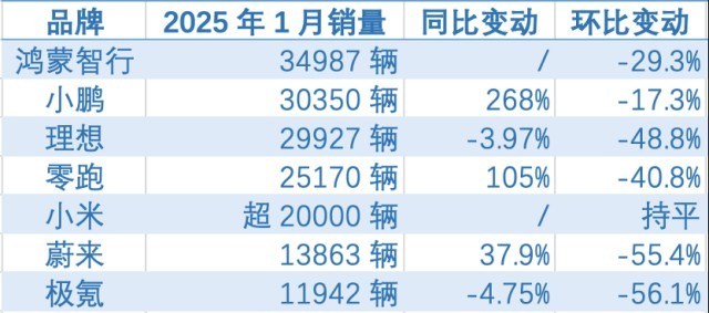 2月1日,多家造車新勢力陸續(xù)公布了2025年首月的銷量數(shù)據(jù)。受春節(jié)車市銷售淡季的影響,今年1月的汽車消費(fèi)市場整體表現(xiàn)不及去年年末,不少車企的銷量出現(xiàn)了較為明顯的環(huán)比下滑。不過,相較于2024年1月,車市仍舊實(shí)現(xiàn)了顯著的同比增長。