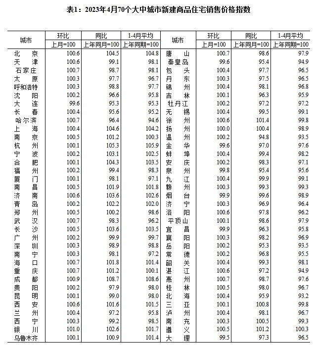 國(guó)家統(tǒng)計(jì)局:4月70城房?jī)r(jià)環(huán)比整體漲幅回落