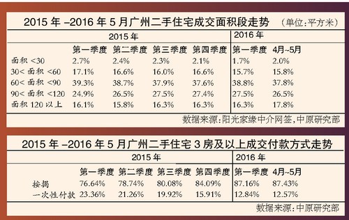中原研究部監(jiān)測(cè)的陽(yáng)光家緣數(shù)據(jù)顯示,120平方米的物業(yè)在2016年4月~5月份成交占比較第一季度提升了1.5個(gè)百分點(diǎn),對(duì)于打算生二孩的老百姓來說,一方面,人口增多,需要提前購(gòu)置大房;另一方面,在低利率的時(shí)代,買房不僅可以使資產(chǎn)保值增值,對(duì)抗通脹,也能利用低利率政策減少購(gòu)房成本支出。在2016年成交的3房及以上的物業(yè)付款方式來看,按揭貸款的占比呈一路走高的態(tài)勢(shì),2016年1月~5月份占比在87%的水平,較2015年第三季度多了7個(gè)百分點(diǎn)左右。