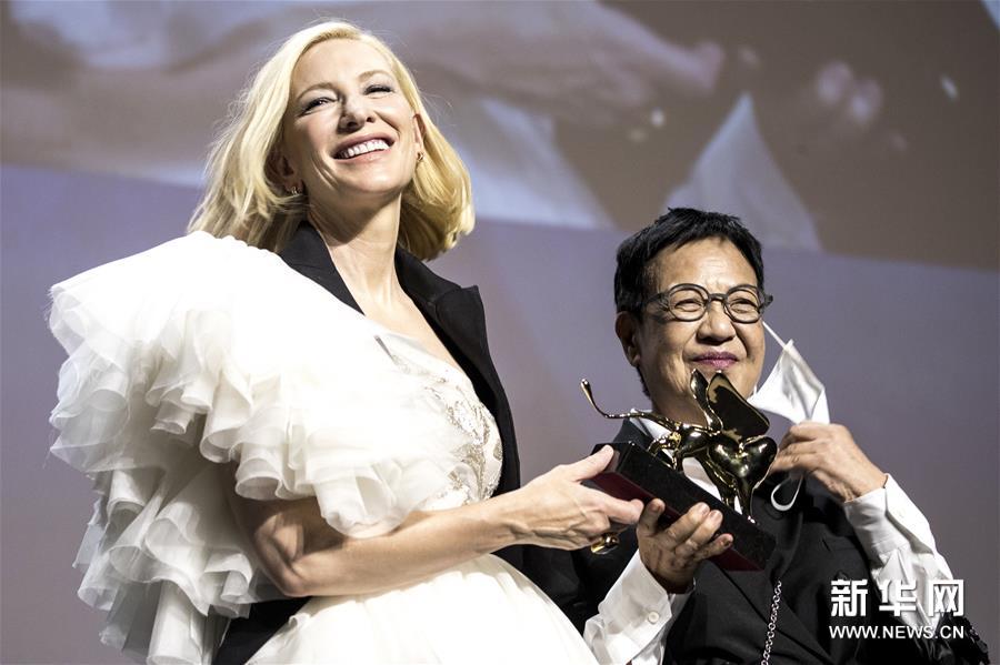 主競賽評(píng)委會(huì)主席凱特·布蘭切特為許鞍華頒獎(jiǎng)。(圖片來源:視覺中國)