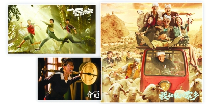 家鄉(xiāng)無(wú)疑是國(guó)慶檔最重要的票房催化劑,一個(gè)“鄉(xiāng)”字凝結(jié)了中國(guó)人的情感認(rèn)同。圖為《一點(diǎn)就到家》《奪冠》《我和我的家鄉(xiāng)》海報(bào)。 制圖:馮曉瑜