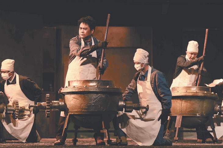 與歌劇跌宕的劇情相匹配,作曲家唐建平也創(chuàng)作了極具戲劇張力的音樂。全劇既有不少充滿挑戰(zhàn)的高音唱段,也有充滿“氛圍感”的旋律。221沒有合適的炸藥合成設(shè)備,工作人員就用人工土法攪拌,小危險不時發(fā)生,這時的音樂充滿懸疑感,緊扣心弦。唐建平還在劇中融入了當?shù)匾魳吩?,上半場音樂由藏族民歌引入,下半場則由青海花兒開啟,而在劇中的聯(lián)歡會上,藏族風格的音樂元素不時響起,也為梁振道與女友的意外相遇鋪墊了情緒。