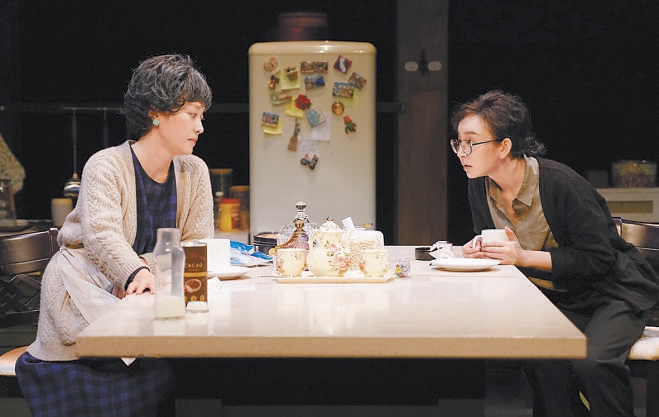 “《晚安,媽媽》沒有大的戲劇沖突,所有的矛盾都來(lái)自真實(shí)的生活,通過(guò)合情合理的人物關(guān)系和環(huán)環(huán)相扣的對(duì)話,去撥開日常生活之下翻滾的心?!碧茻钚稳荩@是一部沒有借助所謂的“手段”的作品,100分鐘的演出真誠(chéng)動(dòng)人,靠的是扎實(shí)的舞臺(tái)實(shí)景和兩位演員牽動(dòng)肺腑的表演——冰箱里塞滿食物,杯子盛著冒白氣的熱巧克力,水龍頭能擰出自來(lái)水,沒有刻意的音樂(lè)和效果,整座舞臺(tái)如同真實(shí)生活的切面。演員需要在“做家務(wù)”的同時(shí)進(jìn)行快節(jié)奏、高密度的對(duì)話,“手上不能停,但也不能攪戲,比如母女倆換沙發(fā)套的那一段,我們就練了很久很久?!碧茻钫f(shuō)。