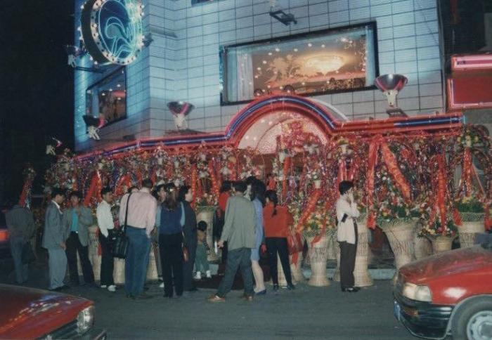 電視劇《繁花》開(kāi)播后,不少上海觀眾在朋友圈曬舊照,回憶20世紀(jì)90年代黃河路的繁華景象。圖為1992年10月,位于黃河路的“笠笠酒家”開(kāi)業(yè)的場(chǎng)景。 受訪者供圖