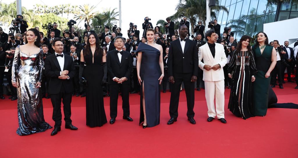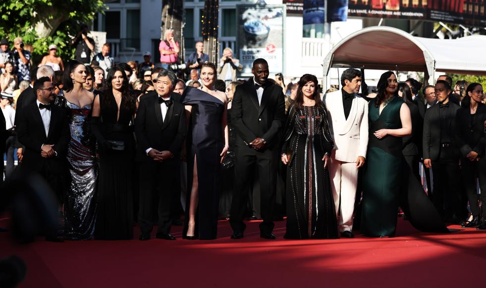 5月25日,在法國南部城市戛納舉行的第77屆戛納電影節(jié)上,主競(jìng)賽單元評(píng)委抵達(dá)閉幕式紅毯。新華社記者 高靜 攝