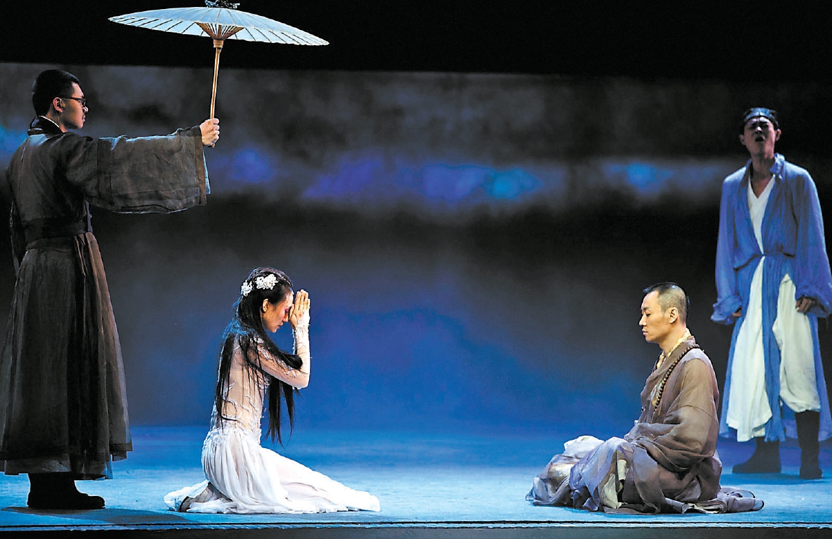 話劇《青蛇》的導(dǎo)演田沁鑫曾說,“即使是排經(jīng)典戲也要和當(dāng)代人的思想靈魂去溝通。所謂挖掘,就是對人物、對生活的把握,用當(dāng)代意識去觀照?!比缃窕仡^再看此劇,相信會有一番新的感悟。(曹雪盟)