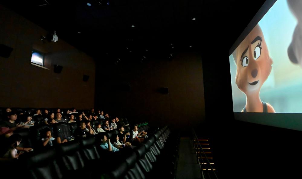 8月31日,觀眾在天津市濱海文化中心保利萬和國際影城觀影。新華社發(fā)(杜鵬輝攝)