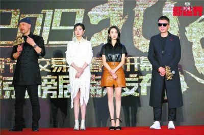 孫紅雷(右一)、萬(wàn)茜、徐兵(左一)等人為電視劇《新世界》站臺(tái)。