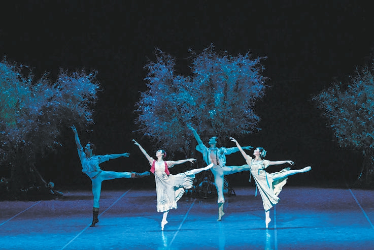當(dāng)黎明來臨,魔法消退,雅典城重歸平靜。戀人們的情感也在舞蹈中歸于和諧,赫米婭與拉山德、海麗娜與狄米特律斯的雙人舞充滿溫情與浪漫,展現(xiàn)了愛情最終的美好歸宿。當(dāng)門德爾松的《婚禮進(jìn)行曲》響起,舞者們在優(yōu)美的圓舞節(jié)奏中翩然起舞,嚴(yán)謹(jǐn)?shù)娜何铇?gòu)圖呈現(xiàn)古典芭蕾極致之美,深刻的情感表達(dá)和華麗的舞美設(shè)計(jì),將莎士比亞筆下的奇幻愛情故事推向高潮,令觀眾沉醉在詩意與浪漫之中。