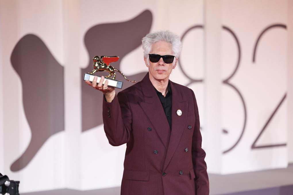 9月6日,在意大利威尼斯,最佳影片金獅獎(jiǎng)《父母姐弟》的導(dǎo)演吉姆·雅穆施與獎(jiǎng)杯合影。新華社記者 李京 攝
