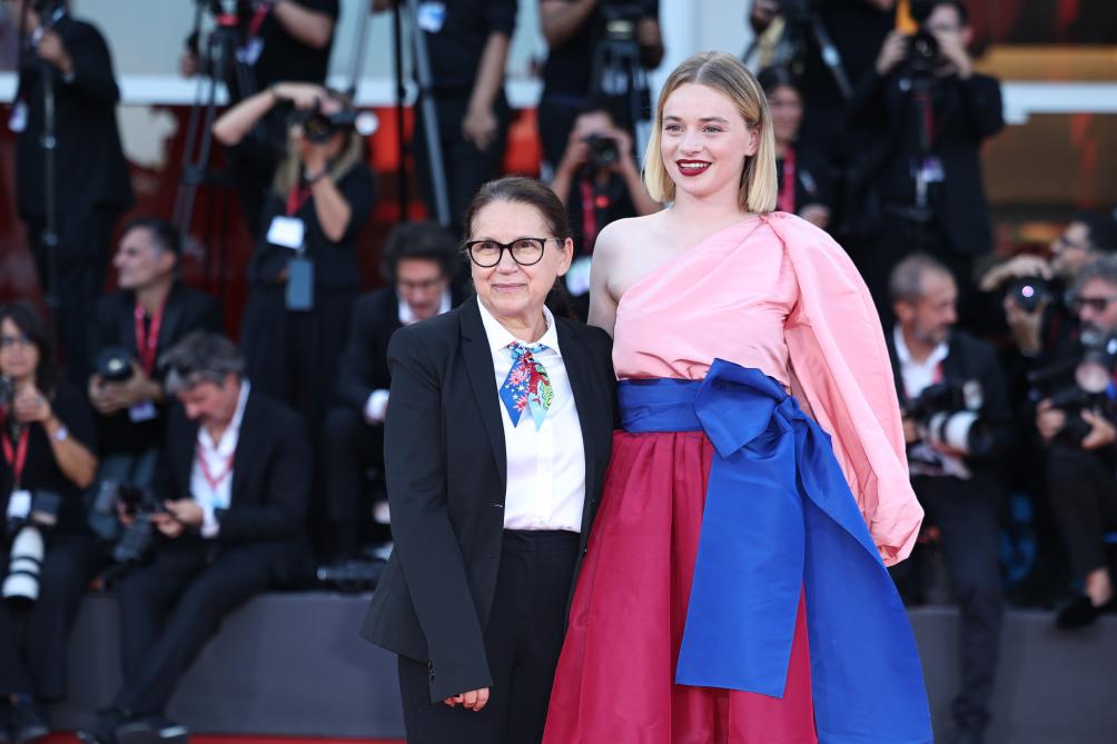 9月6日,在意大利威尼斯,電影《寂靜的朋友》導(dǎo)演伊爾迪科·埃涅迪(左)和演員盧娜·韋德勒出席閉幕式。新華社記者 李京 攝