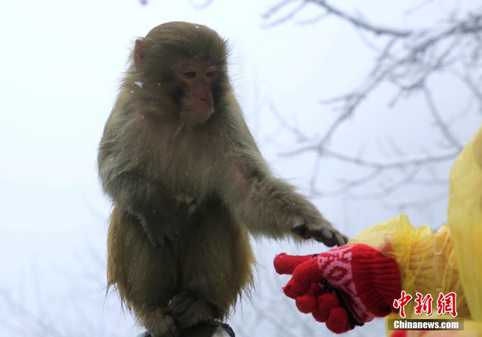 2月22日正值元宵佳節(jié),湖南張家界核心景區(qū)武陵源喜降春雪。在黃石寨景區(qū),成群的野生獼猴或在雪中追逐戲鬧,或在樹枝上攀爬跳躍,或蜷縮著身子賣萌,成為張家界武陵源的一道春季新景。吳勇兵 攝
