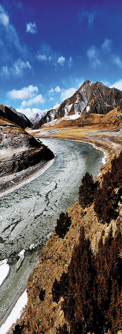 由于地處高原,通天河的身旁除了它滋養(yǎng)過的子民,便極少再有外人來此,因而此地的生態(tài)環(huán)境還保持著原來的模樣。走在河邊向前望去,遠處是崇山峻嶺,近處是大河奔騰,無限的美景讓人感到無比愜意。彎下腰來坐在岸邊,靜靜地看著河水流淌,眼前的景象與《西游記》中的描寫有些相似,渾濁的河水翻滾著浪花。在河道中疾行而過,不禁讓人心驚膽戰(zhàn)。