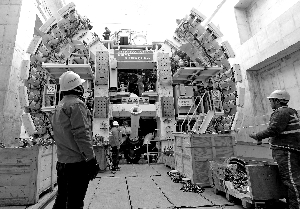 圖為昨天(9日),在京沈鐵路客運專線望京隧道施工現(xiàn)場,幾十名施工人員正冒著寒風對盾構機進行組裝、吊裝。