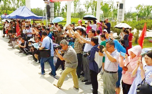 活動(dòng)以“秀美云中河”為主題,以云中河景區(qū)景觀為背景,多方位多視角展示園林獨(dú)特的自然景觀和文化內(nèi)涵,廣泛征集攝影專業(yè)人士和攝影愛好者捕捉到的云中河景區(qū)生態(tài)綠化、四季景觀、園事花事活動(dòng)、景區(qū)文化生活、休憩娛樂場(chǎng)景等,體現(xiàn)和展示云中河景區(qū)的發(fā)展成就、人與自然和諧共處的攝影作品。圖為攝影愛好者現(xiàn)場(chǎng)拍照(記者 徐國(guó)華 攝影報(bào)道)