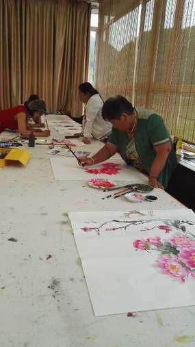 韓家村村民現(xiàn)場(chǎng)學(xué)畫(huà)牡丹