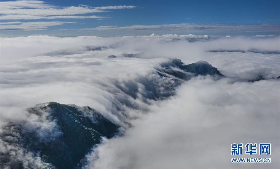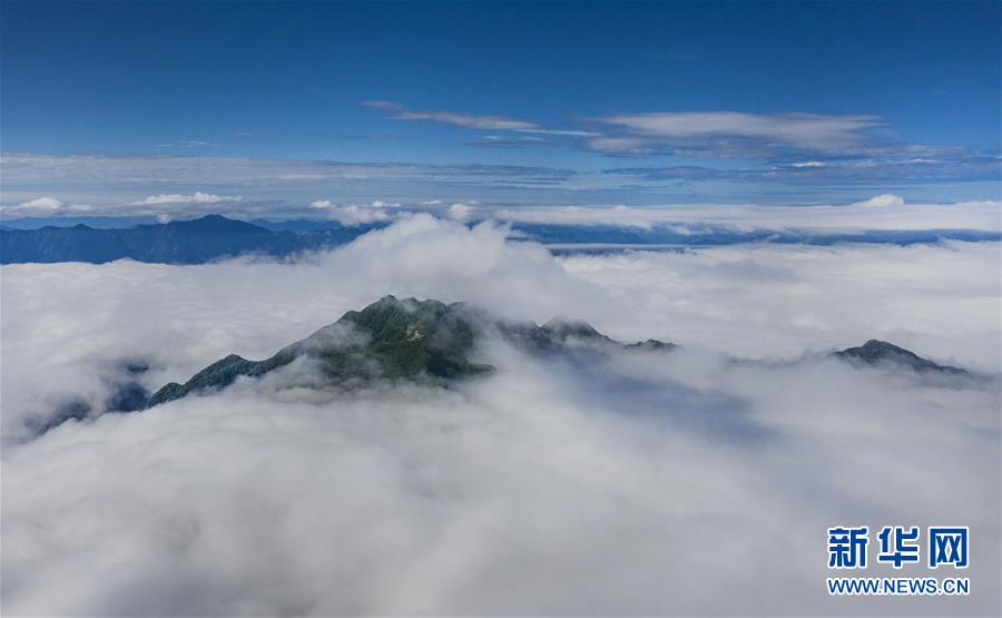 6月10日拍攝的漢中市南鄭區(qū)龍頭山主峰云海景觀(無人機(jī)照片)。 新華社記者 陶明 攝