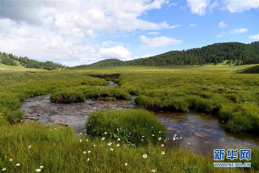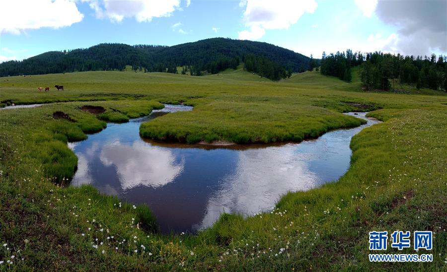 這是6月21日拍攝的新疆阿勒泰地區(qū)哈巴河縣薩爾布拉克鎮(zhèn)的牧場風(fēng)光。新華社記者 沙達(dá)提 攝