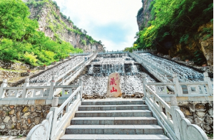 走進(jìn)藏山景區(qū),長(zhǎng)長(zhǎng)階梯順山勢(shì)而建,潺潺流水似有千年歷史流淌。
