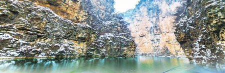 冬季的太行山大峽谷到處是冰瀑,比夏季更有看頭,是難得一見的美景。太行山大峽谷的山與水,在冰雪的映襯下,銀裝素裹、玲瓏剔透,像一幅素雅的國(guó)畫,儼然呈現(xiàn)出和北方其他山峰不一樣的冰雪景,深情款款地展示著它獨(dú)有的冰雪風(fēng)情。