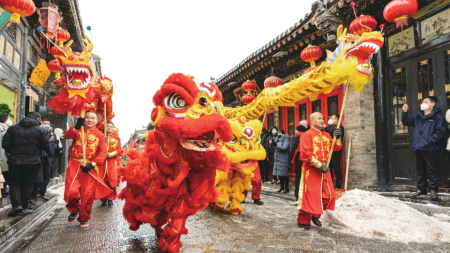 南城墻上,大型彩燈絢麗奪目;興國(guó)寺舊址,手書春聯(lián)筆墨飄香;冀家老宅,古樸雅致悠悠中國(guó)風(fēng)……每年農(nóng)歷的正月十五,平遙古城會(huì)舉辦盛大的民俗活動(dòng)——“平遙中國(guó)年”,讓游客感受到濃濃的傳統(tǒng)文化氛圍。逛廟會(huì),看花燈,賞民俗……走在古城里,當(dāng)團(tuán)圓時(shí)刻被濃濃的年味包圍,每個(gè)游客都能在古城里創(chuàng)造屬于自己的專屬年味記憶,與熱氣騰騰的年味撞個(gè)滿懷。穿越之旅·漢風(fēng)雅韻、古城活態(tài)游、社火表演等民俗活動(dòng)在古城接連上演,讓游客體驗(yàn)獨(dú)具平遙地方特色和晉商韻味的民俗民風(fēng),領(lǐng)略中國(guó)北方漢民族傳統(tǒng)文化的魅力。