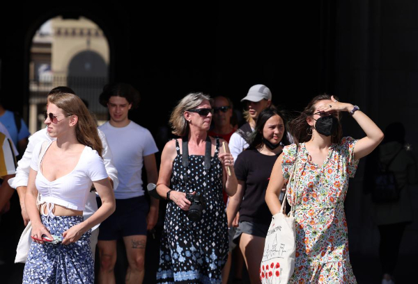 2022年7月13日,人們走出法國(guó)巴黎盧浮宮博物館。新華社記者高靜攝??