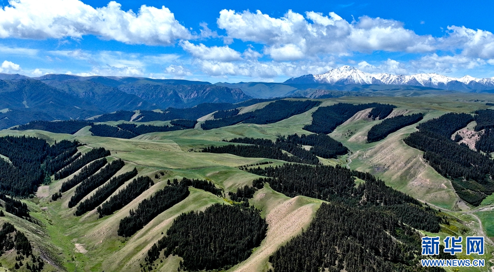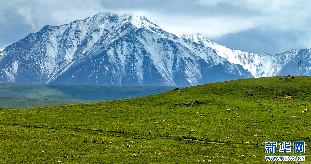 盛夏時(shí)節(jié),祁連山國(guó)家公園甘肅省張掖市肅南裕固族自治縣康樂鎮(zhèn)段,湛藍(lán)的天空飄著朵朵白云,映襯著巍峨的雪峰和碧綠的大地,牛羊在青草中浮動(dòng),像一把珍珠撒在了綠色的絨毛毯上,勾勒出一幅天然秀麗的生態(tài)畫卷。新華網(wǎng)發(fā)(王將 攝)