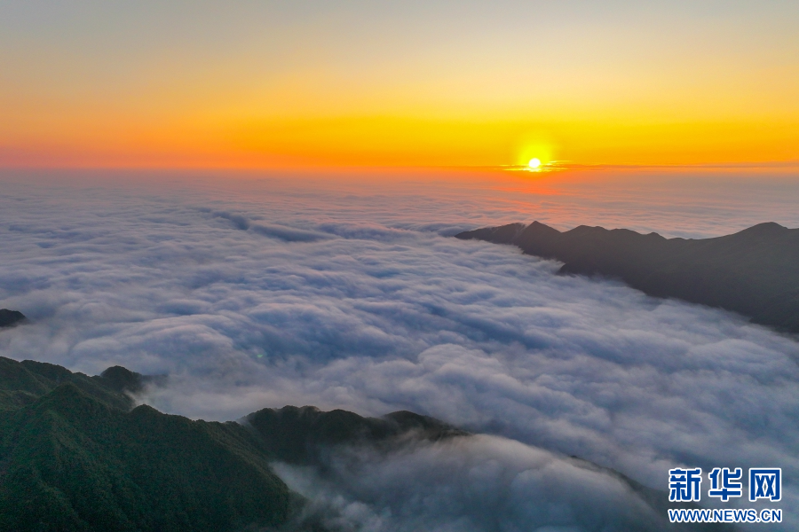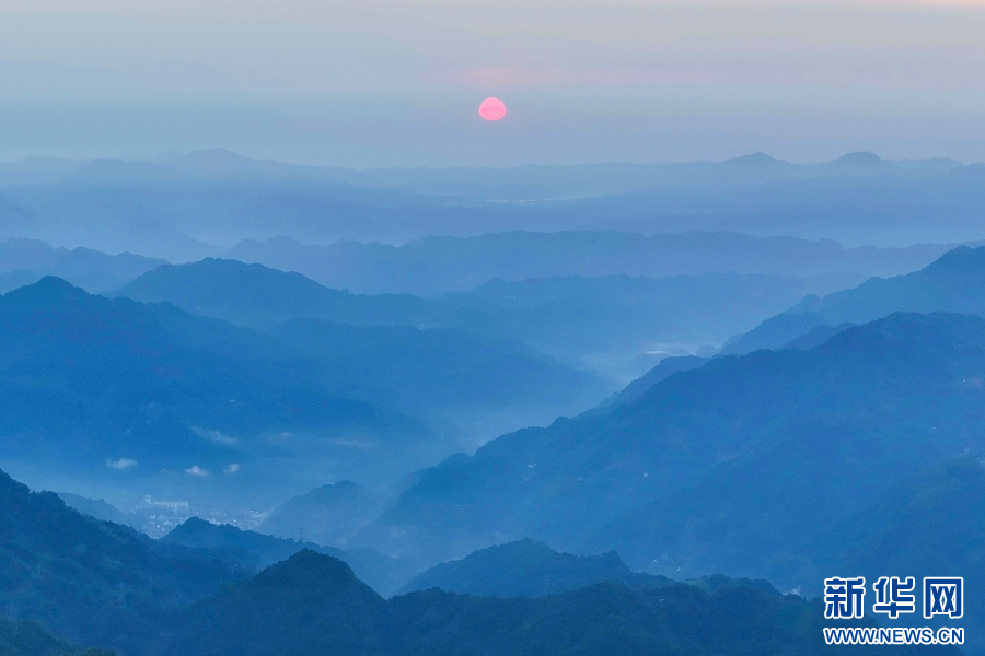 日出群山,宛如一幅水墨畫(huà)卷(視頻截圖)。新華網(wǎng)發(fā)(大關(guān)縣融媒體中心供圖)