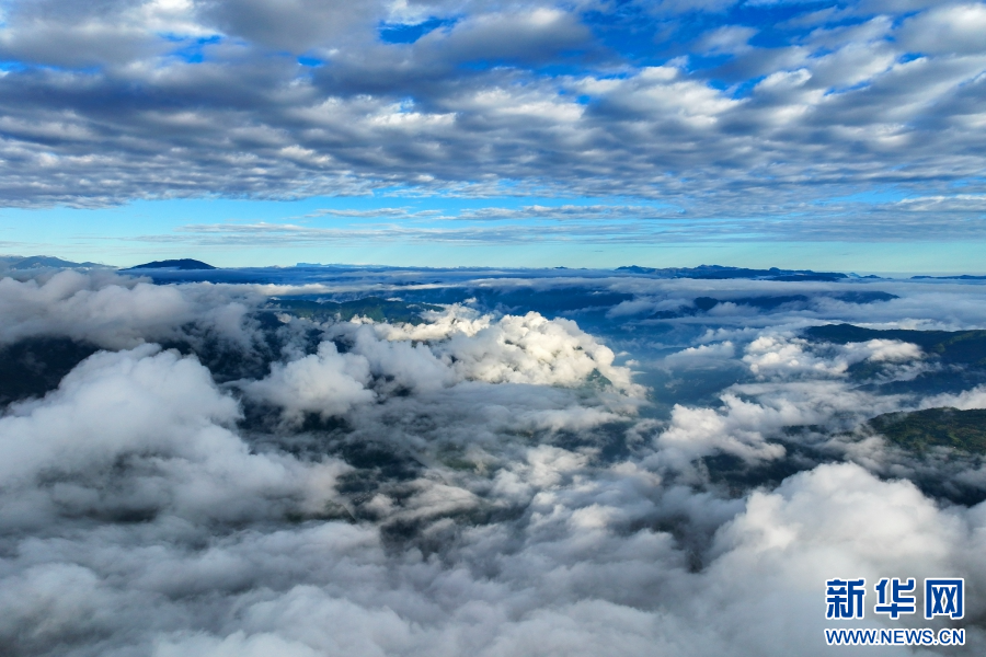 山巒云海宛如仙境(視頻截圖)。新華網(wǎng)發(fā)(大關(guān)縣融媒體中心供圖)