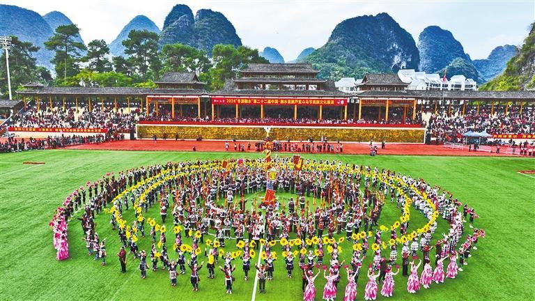 11月23日,廣西柳州市融水苗族自治縣民族體育公園,群眾身著盛裝參加民族文化展演活動,吸引了八方游客。黎寒池?cái)z(中經(jīng)視覺)