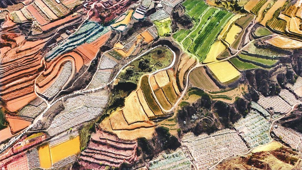 4月7日,在萬榮縣萬泉鄉(xiāng),成片的梯田層層疊疊、色彩斑斕,山鄉(xiāng)間呈現(xiàn)出一幅蜿蜒層疊的田園美景,宛如詩畫中的世界,美不勝收。