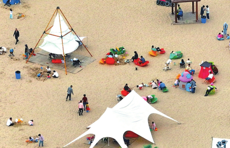①4月28日,太原市晉陽(yáng)湖沙灘浴場(chǎng),游客們正在樂(lè)享美好時(shí)光。
