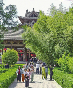 ③4月26日,游人在萬(wàn)榮縣東岳廟游玩,在宜人的春光里觀賞純木質(zhì)結(jié)構(gòu)建筑飛云樓,感受傳統(tǒng)文化的魅力。