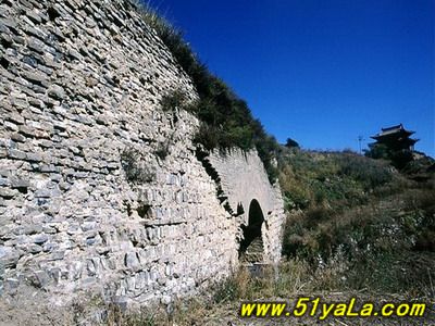 現(xiàn)存雁門(mén)關(guān),基本保持完整,整個(gè)關(guān)城雄偉壯觀,左右邊墻雉諜,烽墩壕塹俱備,誠(chéng)有“城隨山勢(shì)轉(zhuǎn),關(guān)并塞云齊”之威。雁門(mén)關(guān)西北,約10公里處有廣武城,分新、舊廣武城兩堡。舊廣武城,是一處長(zhǎng)方形古代城堡,10多米高的長(zhǎng)城,為條石基磚包砌。城堡除垛上女兒墻損壞外,其余保存較好。城頭上有石碑,是公元1725年所立。