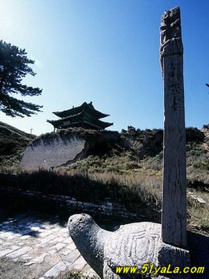 雄關(guān)雁門(mén),居“天下九塞”之首(《呂氏春秋》)。從戰(zhàn)國(guó)時(shí)期的趙武靈王起,歷代都把此地看作戰(zhàn)略要地。趙置雁門(mén)郡,此后多以雁門(mén)為郡、道、縣建制戍守。雁門(mén)關(guān)之稱(chēng),始自唐初。因北方突厥崛起,屢有內(nèi)犯,唐駐軍于雁門(mén)山,于制高點(diǎn)鐵裹門(mén)設(shè)關(guān)城,戍卒防守?!短茣?shū)·地理志》描述這里“東西山巖峭拔,中有路,盤(pán)旋崎嶇,絕頂置關(guān),謂立西徑關(guān),亦曰雁門(mén)關(guān)。”后經(jīng)五代十國(guó)、宋、遼、金、元約四百余載。元朝設(shè)千戶(hù)所,關(guān)城被毀。明代吉安侯陸享于洪武七年(1374)自監(jiān)民工筑新關(guān)于舊關(guān)東北十里處的要道。南距代城縣四十余里,北鄰廣武古城二十一里,地勢(shì)更為險(xiǎn)要。明末清初的著名學(xué)者顧炎武曾親臨此地。他寫(xiě)道“雁門(mén)重關(guān),山巒在演,霞飛云舉,兩山對(duì)峙,其形如門(mén),而飛雁出于其間。”該關(guān)城,周長(zhǎng)二里,墻高二丈,石座磚身,雉堞為齒,洞口三重,曰東門(mén)、西門(mén)、小北門(mén)。東門(mén)上筑樓臺(tái),曰雁樓,門(mén)額嵌石匾一方,橫書(shū)“天險(xiǎn)”(即“天險(xiǎn)”)。西門(mén)上筑有楊六郎廟,門(mén)額嵌石匾一方,橫書(shū)“地利”(即“地利”)。小北門(mén)未設(shè)頂樓,但磚石結(jié)構(gòu),格外雄固。門(mén)額石匾橫刻:“雁門(mén)關(guān)”三字。洞門(mén)兩側(cè)鑲嵌磚鐫楷書(shū)檢聯(lián):“三關(guān)沖要無(wú)雙地,丸塞尊崇第一關(guān)?!睎|門(mén)外北側(cè)建有“靖邊寺”祀戰(zhàn)國(guó)時(shí)代的軍事家趙將李牧。西門(mén)外右側(cè)建有關(guān)帝廟。關(guān)城正北置有駐軍營(yíng)房,東南設(shè)有練兵教場(chǎng)。整個(gè)關(guān)城建筑,虎踞龍盤(pán),雄偉壯觀。明清以后,關(guān)城雖屢有重建。但隨著我多民族統(tǒng)一國(guó)家疆域的逐步形成,內(nèi)長(zhǎng)城作為“內(nèi)邊”的作用已經(jīng)失去,所屬的雁門(mén)雄關(guān)也隨之荒廢?,F(xiàn)在的關(guān)城僅在東門(mén)、西門(mén)、小北門(mén)三個(gè)門(mén)洞和靖邊寺前的一對(duì)石獅,一副石旗桿,明鐫李牧碑石一塊,以及寺后的數(shù)株青松。