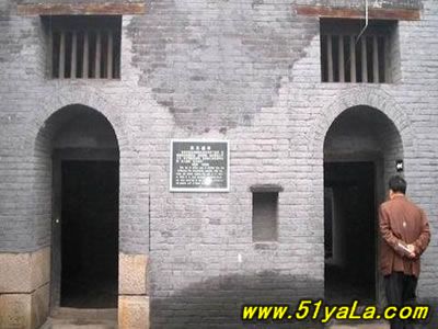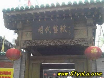 “蘇三監(jiān)獄”在今洪洞縣政府院內(nèi)西南,亦即明洪洞縣衙西南角。一進掛有“明代監(jiān)獄”匾額的大門,首先看到的便是蘇三的塑像,外院當年監(jiān)獄的辦公場所,右邊的院落是普通監(jiān)牢,中間是過道,兩邊共有監(jiān)牢十余間,過道頂上布有鐵絲網(wǎng),網(wǎng)上掛有銅鈴,一有犯人企圖越墻逃跑,便會觸響銅鈴。過道的盡頭,正對的是獄卒的值班室,右面的墻上有獄神的供位,傳說當年囚犯入獄都要參拜獄神,就是獄神下面的墻基處,有一小洞,是當年運送尸體的出口,犯人在獄中病死或是被打死,是不能從大門抬出去的,只能從這個小洞拉出去。過道盡頭的左邊,便是死囚牢的大門,死囚牢雙門雙墻,門上畫有狴犴,狴犴是龍的兒子,長得卻象老虎,因此人們誤稱為“虎頭牢”,大約是因為龍生九子,子子不同,狴犴專門掌管刑獄,大門只有一米六高,所有進入死囚牢的人都要在狴犴像前低頭,顯示對法律的敬畏。進了門洞,里面還有一道門,而這兩道門卻是一扇從右開,一扇從左開,不明就里的囚犯如果越獄,往往出了第一道門卻怎么也打不開第二道門,一個小小的改動就能起到拖延犯人越獄時間的作用,不能不佩服古人的智慧。進入死牢院,右面是一堵高墻,左面就是當年關(guān)押蘇三的牢房,里面有蘇三的塑像。死囚院的中央還有當年蘇三坐監(jiān)時洗衣的水井和石槽,井口留有一道道繩索磨下的印記,井口只有半尺多寬,這是為了防止死囚投井自殺。據(jù)說,右面的高墻里灌裝的都是流沙,如果犯人想要挖墻越獄,流沙便會從挖開的小口中源源不斷地流來,使其難以挖通圍墻。1964年我國著名考古學家王冶秋先生曾在洪洞考察確認,蘇三監(jiān)獄為我國罕見的明代監(jiān)獄,并題詩曰:“虎頭牢里羈紅妝,一曲攪亂臭水漿。王三公子今何在?此處空留丈八墻?!笔陝觼y期間,蘇三監(jiān)獄被拆毀。為了使“蘇三監(jiān)獄”這一僅存的明代監(jiān)獄得以保留,洪洞縣人民政府后做出了修復“明代蘇三監(jiān)獄”的決定。修復事宜于1984年5月開始,同年10月竣工。