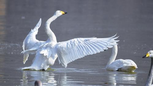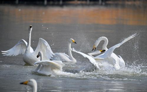 隨著天氣逐漸轉(zhuǎn)暖,在平陸黃河濕地越冬的白天鵝迎來(lái)北遷高峰,返回西伯利亞。平陸黃河濕地是國(guó)內(nèi)白天鵝越冬地之一,每年到此越冬的白天鵝數(shù)量在1萬(wàn)只左右。薛俊  攝影報(bào)道