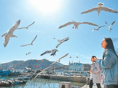 游客在大連老虎灘漁人碼頭游覽。新華社記者 魯 鵬攝