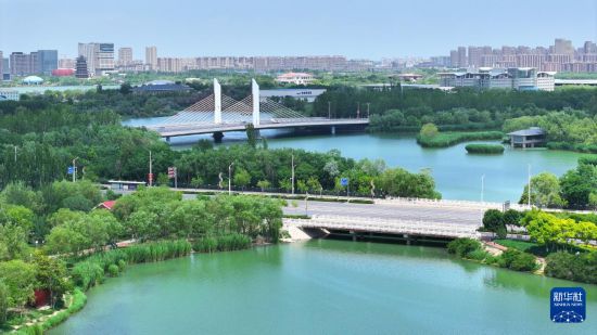 這是6月11日拍攝的寧夏銀川市閱海國家濕地公園(無人機照片)。