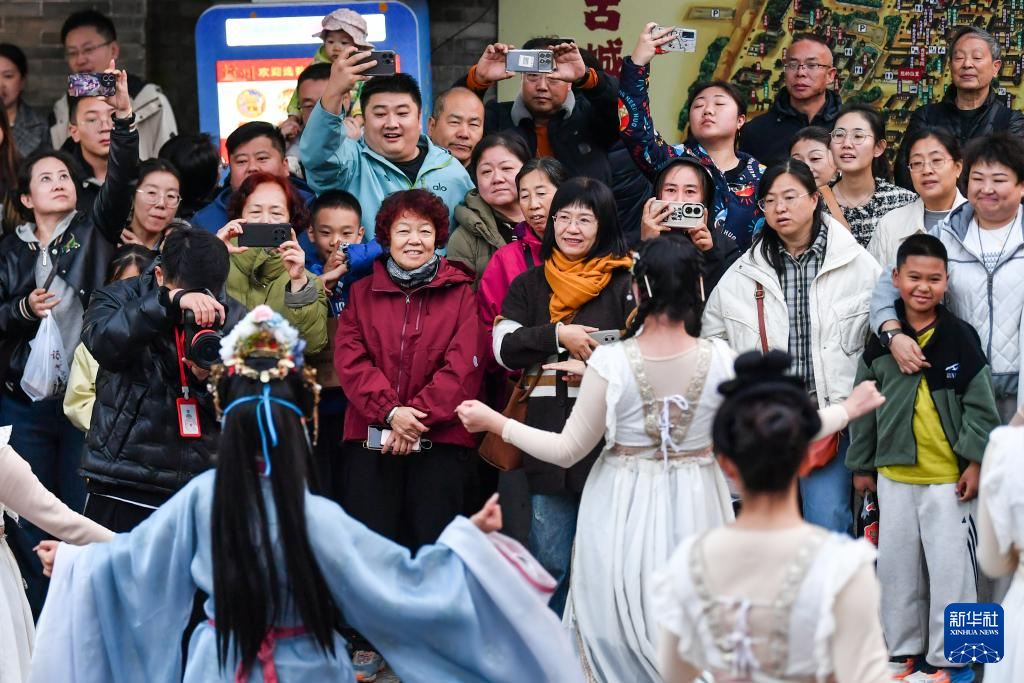 10月23日,游客在忻州古城內(nèi)觀看表演。