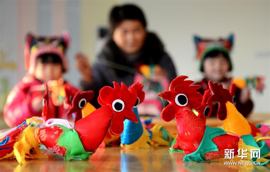 農(nóng)歷立春節(jié)氣將至?xí)r,我國民間有立春給小孩佩戴“春雞”的習(xí)俗,寓意豐衣足食、茁壯成長、吉祥如意。新華社發(fā)(趙東山 攝)