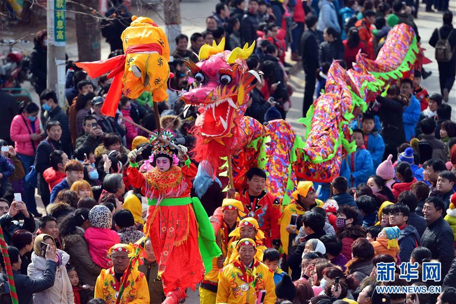 2月21日,社火隊(duì)在進(jìn)行巡游拜年。當(dāng)日,有著千年歷史的傳統(tǒng)村落——山東省章丘市三德范村組織31個(gè)社火隊(duì)舉行社火巡游拜年活動(dòng),在元宵佳節(jié)來(lái)臨之際為鄉(xiāng)親們送祝福。新華社記者 郭緒雷攝